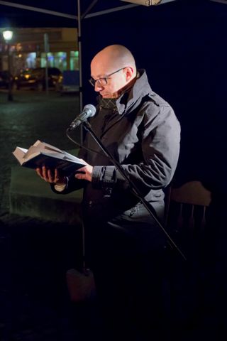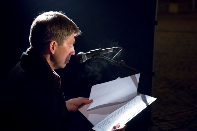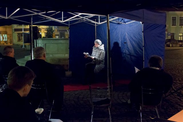 Chwilowa pauza w codziennym zabieganiu. Zatrzymanie się i zaduma. Skupienie. Wszystko to towarzyszyło spotkaniu w sercu Wielkiego Tygodnia – Wielką Środę na skoczowskim rynku. Osoby różnych zawodów, wyznań, wyraziście wpisane w lokalną społeczność odczytały wybrane fragmenty różnych ewangelii w artystycznym tłumaczeniu Romana Brandstaettera. Wśród nich znaleźli się: Mirosław Sitko – Burmistrz Skoczowa, Rajmund Dedio – Przewodniczący Rady Miejskiej, Janusz Skowroński – Prezes Spółdzielni Mieszkaniowej „Wspólnota”, Hanna Blokesz-Bacza – kustosz Muzeum im. Św. Jana Sarkandra, Halina Gatner – Dyrektor ZS nr 1, Wojciech Grzebielec – z-ca Dyrektora ZS nr 3, Krzysztof Gołębiowski – lekarz pediatra, Ewa Kapa – pracownik Biblioteki Publicznej, Roman Bojda – Prezes Skoczowskiego Uniwersytetu III Wieku, Krzysztof Greń – pracownik Miejskiego Zarządu Dróg. Ostatni fragment, prowadzący słuchaczy wersetami do Ogrójca przedstawił Dyrektor Miejskiego Centrum Kultury „Integrator” Kuba Abrahamowicz.