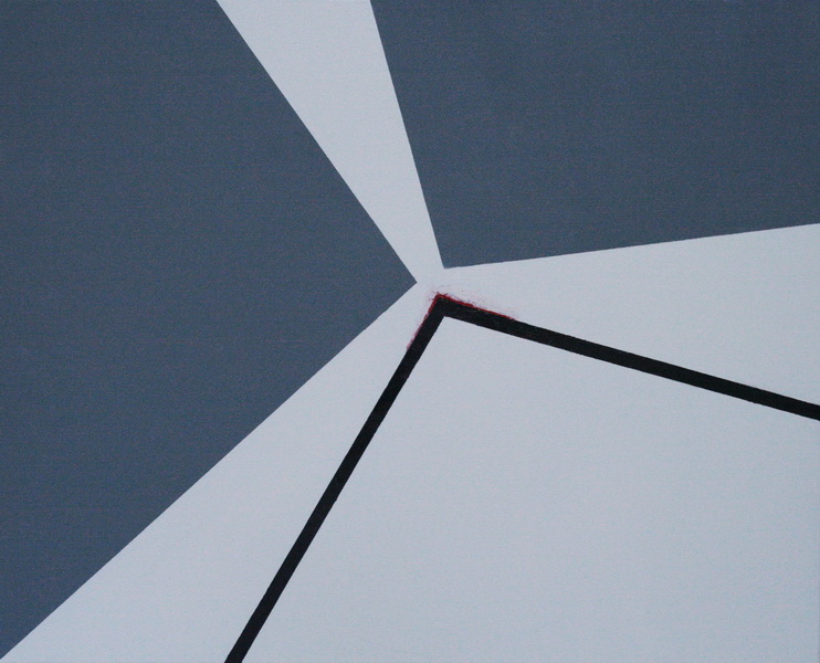 Kompozycje moich prac odwołują się do sztuki konstruktywistów. W swoich obrazach zdyscyplinowanym formom przeciwstawiam ekspresyjne struktury. Dodatkowo napięcie wzmagają przeciwstawione sobie płaskie powierzchnie i reliefowe faktury. Kolor ma znaczenie emocjonalne. Zgeometryzowane kształty, wypełnione płaskimi barwami i brak śladu narzędzia, wywołują wrażenie, że obszar ten nie został tknięty ludzką ręką. W opozycji są drobne plamki jaskrawej farby i wibrujące linie, przebijające spod warstw impasta. I choć faktura daje poczucie działalności człowieka, to grubo kładziona achromatyczna barwa przytłacza jaskrawą linię. Linia napotyka na opór płasko wypełnionej, prymitywnej formy. Nie nachodzi na nią i nie wkracza w jej obszar. Traci na swojej sile, aż w końcu ulega wyciszeniu. Spektrum barw, będące symbolem ludzkiej kondycji psychicznej, podlega sukcesywnemu ograniczeniu, zaś powierzchnia obrazu eksponująca płaskość uruchamia subiektywne odczucie przestrzeni.