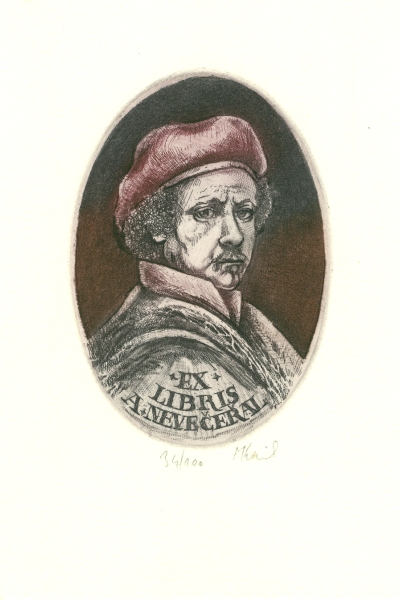 Rembrandt osiągnął sukces za życia, ale ostatnie lata spędził w biedzie. Do dziś wiele faktów na temat Rembrandta pozostaje nieznanych lub przynajmniej zniekształconych. Częściowo wynika to z szeregu mitów, które narosły już za życia artysty. Jedną z głównych dziedzin twórczości Rembrandta był portret. Szczególnie autoportrety. Rozsławił ten gatunek najpierw w Holandii i dlatego można go uważać za jednego z pierwszych mistrzów autoportretu. Na ekslibrisach właśnie jego autoportrety stały się najczęstszym motywem.