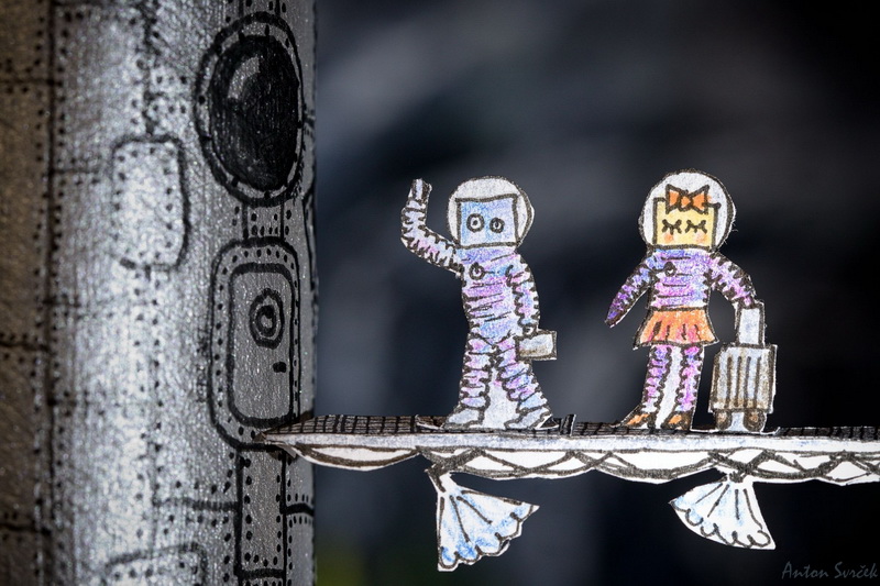 Pierwsza wzmianka o Robocie Ant pochodzi z 2016 roku z pamiętnika mojej córki. Od tego czasu powstało kilka innych obrazków, głównie takich jak kartki urodzinowe czy świąteczne. Jego obecna forma, czyli wycinane miniaturowe figurki, osadzone w prawdziwym świecie, oraz jego przyjaciółka Zoe, powstały podczas niekończących się dni kryzysu koronawirusa w marcu 2020 roku. Mają go już dość i trzymajmy kciuki, aby naprawdę mogli się cieszyć pobytem na naszej pięknej błękitnej planecie.