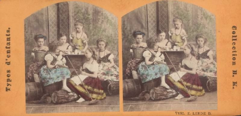Nie tylko krajoznawstwo było tematem fotografii stereoskopowych - robiono też zdjęcia teatralne, sceny rodzajowe czy tak ongiœ modne "żywe obrazy" oraz służšce do celów naukowych. I nie musiały wcale być na podłożu nieprzezroczystym. Robiono w tych czasach też przezrocza na podłożu szklanym lub papierowym, kolorowane.