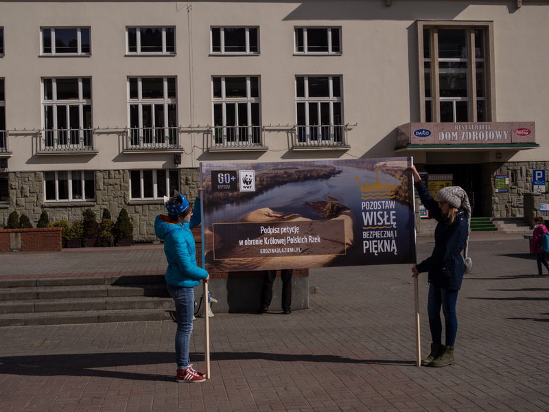 Godzina dla Ziemi WWF organizowana jest już od dziesięciu lat. Po raz kolejny, przebieg akcji wykroczy poza symboliczny gest wyłączenia świateł. Kampania odbywa się pod hasłem „Godzina dla Wisły”, nawiązując do Uchwały Sejmu, na mocy której rok 2017 został ogłoszony Rokiem Rzeki Wisły. Nad Królową Polskich Rzek - dziką i piękną - zawisły czarne chmury. Zgodnie z pomysłem rządu Wisła ma stać się wodną autostradą transportową. Natomiast doświadczenia z całego świata, głównie z USA i Europy pokazują, że regulacja rzek i budowanie na nich tam jest niebezpieczne zarówno dla ludzi, jak i dla żyjących w niej zwierząt. Kampania ma na celu uświadomienie Polakom, że nieuregulowana i naturalnie płynąca Wisła jest rzeką bezpieczniejszą. Na świecie renaturyzuje się rzeki, oddając im miejsce do naturalnego i bezpiecznego rozlewania się lub burzy się tamy. Dzisiejsza wiedza naukowa mówi jasno, że rzeka jest bezpieczniejsza dla swojego otoczenia, kiedy pozostaje w swoim naturalnym korycie.