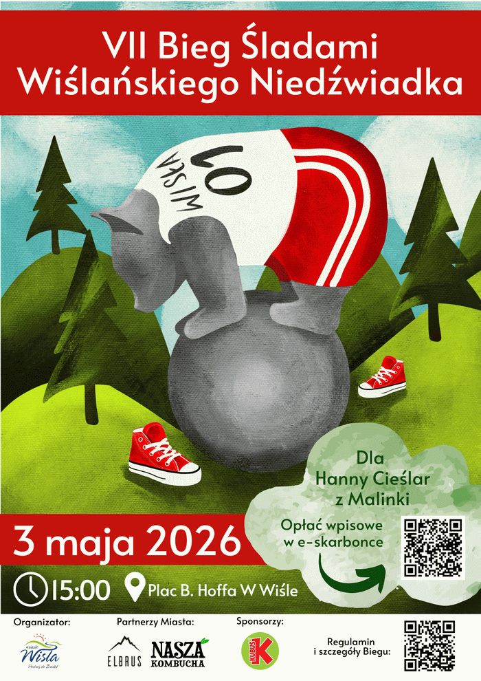 Miasto Wisła zaprasza do udziału w VII Biegu Śladami Wiślańskiego Niedźwiadka o charakterze charytatywnym, który odbędzie się w niedzielę, 3 maja 2026 roku na placu Hoffa w Wiśle.