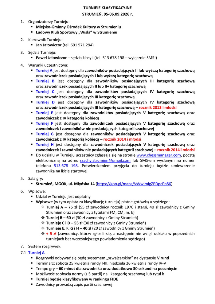Szachowe Turnieje Klasyfikacyjne w Strumieniu