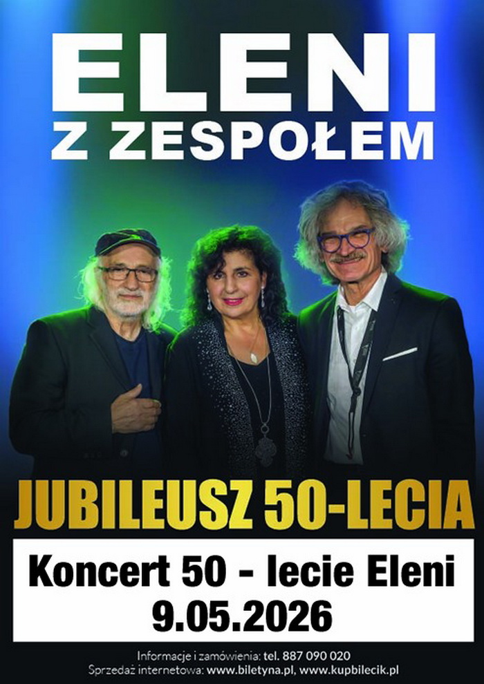 Zapraszamy państwa serdecznie na wyjątkowy, jubileuszowy koncert ELENIi z zespołem. Będzie to muzyczna podróż z największymi przebojami piosenkarki ,które spiewa od 50 lat. Usłyszymy piosenki zespołu prometusz takie jak „ po słonecznej stronie życia”, „ ballado hej, ballado niepokorna” , w którym eleni rozpoczynała karierę . Przeboje takie jak : miłość jak wino, troszeczkę ziemi troszeczkę słońca, , po słonecznej stronie życia, a słońce sobie lśni – to kulminacja koncertu. Nostalgiczne , pełne refleksji piosenki : nic miłości nie pokona oraz nim świt obudzi noc – to druga część koncertu zakończona wiązanka przebojów greckich oraz zorbą. Trzecia część koncertu to największe przeboje lat 90 -tych oraz na zakończenie grecka piosenka w podziekowaniu publiczności za 50 lat obecności.