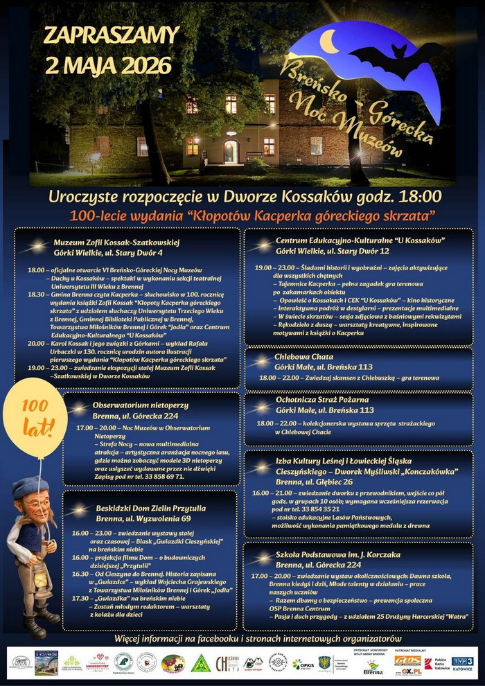 18:30 – „Gmina Brenna czyta Kacperka” – słuchowisko w 100. rocznicę wydania książki Zofii Kossak Kłopoty Kacperka góreckiego skrzata