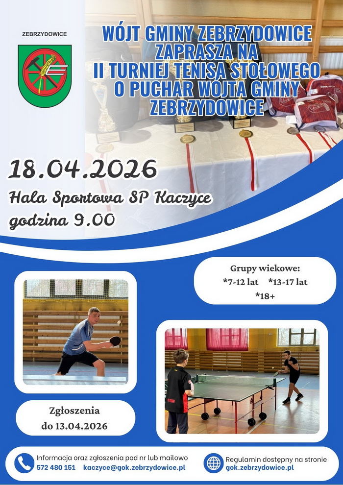 Regulamin II Turnieju Tenisa Stołowego o Puchar Wójta Gminy Zebrzydowice